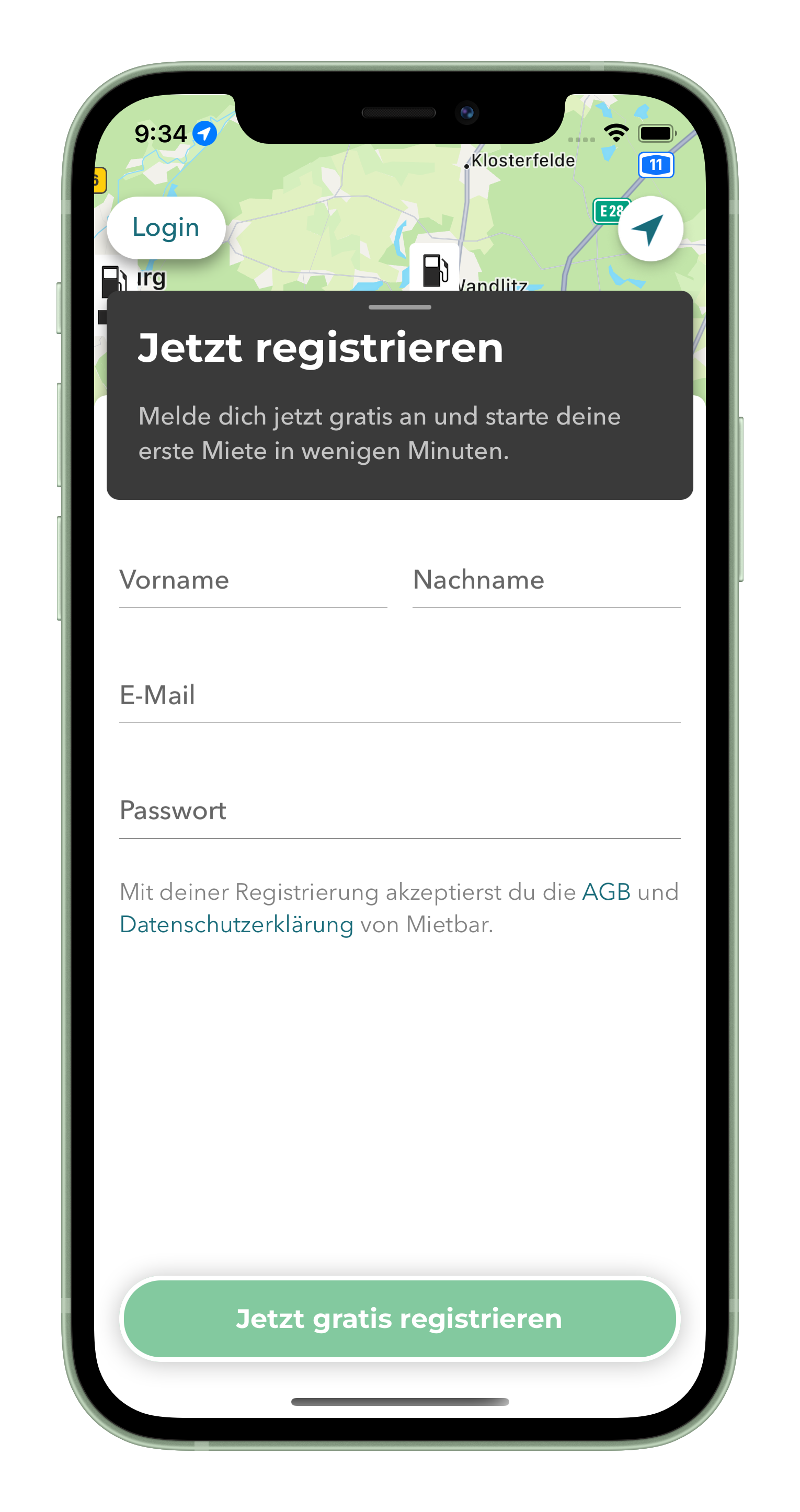 Jeder, der sich über unsere Mietbar App vollständig registriert und eine gültige Fahrerlaubnis besitzt.
